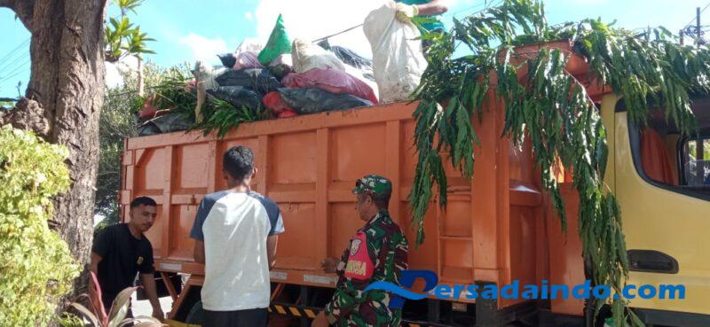 Sersan Kepala Alexander Tanesib membantu langsung proses pengangkutan sampah dari lokasi penampungan sementara ke atas truk pengangkut yang akan membawa sampah ke Tempat Pembuangan Akhir (TPA). Kerja sama ini bertujuan mempercepat proses pengangkutan sekaligus mengedukasi warga untuk turut serta menjaga kebersihan lingkungan.