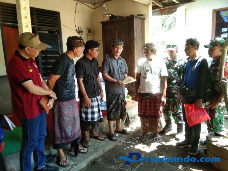 Gianyar – Temesi, Sabtu (13/9/2025) Sebagai wujud kepedulian terhadap warga yang mengalami musibah, Babinsa Koramil 1616-01/Gianyar Serka I Dewa Putu Jana memberikan atensi dan mendampingi kegiatan kunjungan dari Kementerian Sosial RI yang diwakili oleh Kepala Dinas Sosial Kabupaten Gianyar ke rumah duka korban bencana alam di Banjar Peteluan, Desa Temesi, Kecamatan Gianyar. Dalam kesempatan tersebut, pihak Kementerian Sosial menyalurkan santunan berupa paket sembako dan bantuan uang tunai sebesar Rp15.000.000 (lima belas juta rupiah) kepada keluarga yang terdampak.