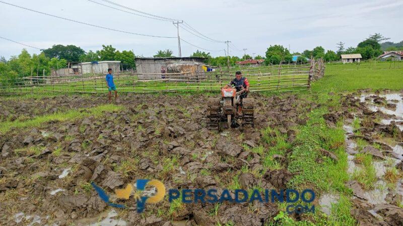 Dengan penuh semangat, Babinsa terjun langsung ke sawah bersama warga, membantu proses pengolahan dan penyiapan lahan agar siap ditanami.