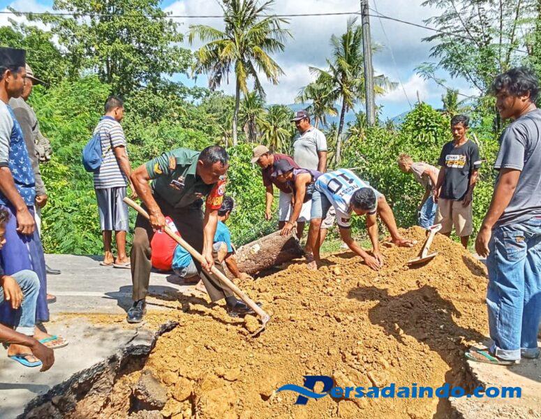 • Babinsa Wilamaci bersama warga Timbun Gorong-Gorong Ambruk di Dusun Ngali Baru Akibat Banjir