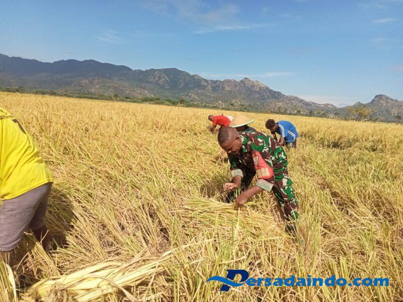 NTT-KEFAMENANU., Kepedulian terhadap masyarakat tak sekadar lewat kata, tetapi melalui aksi nyata. Itulah yang ditunjukkan oleh Sertu Domingos Soares, Babinsa Koramil 1618-03/Insut, yang terjun langsung ke sawah membantu warga melaksanakan panen padi di Desa Humus Oekolo, Kecamatan Insana Utara, Kabupaten TTU, Minggu pagi (11/05/2025).
