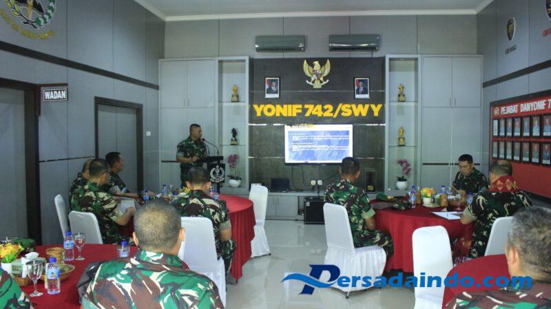 Rombongan Pangkogabwilhan II disambut Danrem 162/Wira Bhakti Brigjen TNI M. Sjasul Arief, Komandan Yonif 742/SWY Letkol Inf Yugi Prastawa, serta Pejabat Utama Korem 162/WB. Dalam kesempatan tersebut, Danyonif 742/SWY menyampaikan paparan satuan terkait kondisi satuan, Dislokasi Kompi yang tersebar di wilayah NTB, serta saran masukan terkait pembaruan senjata organik satuan dan fasilitas perumahan prajurit.