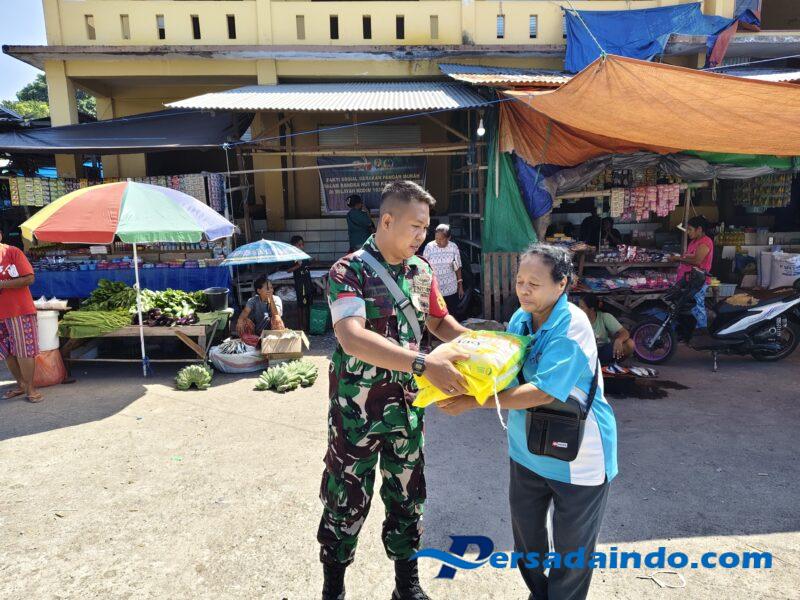 Larantuka – Dalam rangka memperingati Hari Ulang Tahun ke-80 Tentara Nasional Indonesia (TNI), Komando Distrik Militer (Kodim) 1624/Flores Timur melaksanakan kegiatan bakti sosial berupa Gerakan Pangan Murah yang dipusatkan di Pasar Oka, Desa Lamawalang, Kecamatan Larantuka, Kabupaten Flotim. Senin (15/09/2025).