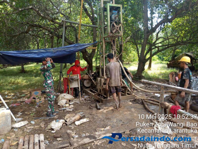 Persadaindo.com – Flotim – Untuk meningkatkan kesehatan masyarakat serta kebutuhan sarana air bersih di di tengah musim kemarau, TNI Manunggal Membangun Desa (TMMD) ke 124 TA 2025, Kodim 1624/Flotim, membuat 2 sumur bor tersebar di Kelurahan Puken Tobi Wangibao dan Kelurahan Sarotari, Kecamatan Larantuka, Kabupaten Flotim. Minggu (11/05/2025).