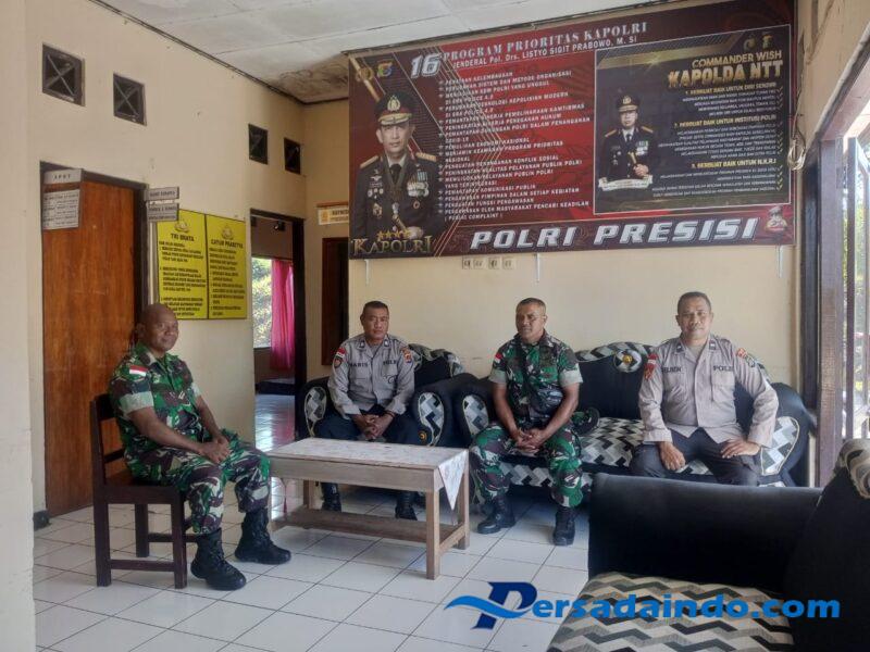 SATGASTER KODIM 1605/BELU, Usai melaksanakan pergantian serah terima Pos, Personil Satgaster Kodim 1605/Belu Pos Halibete II yang baru Serka Donatus F. K dan Serda Hironimus Kono melaksanakan kegiatan kunjungan silahturahmi ke Polsek Lasiolat, Kecamatan Lasiolat, Kabupaten Belu, Kamis (2/10/2025).