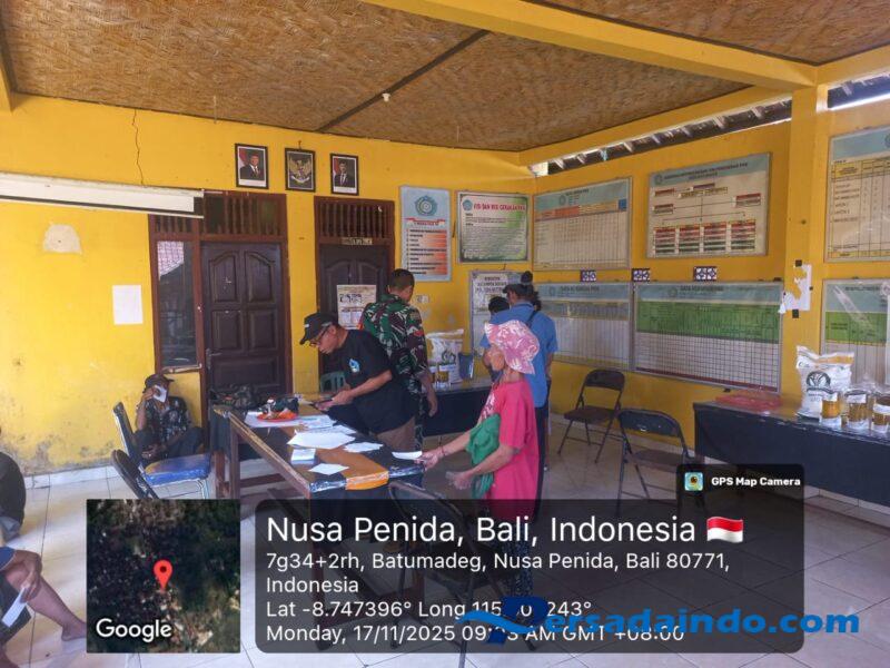 Klungkung,- Pendistribusian bantuan pangan beras dan minyak goreng program Penerima Bantuan Pangan ( PBP ) bulan Oktober dan Nopember 2025 digelar Pemerintah Desa Batumadeg, Kecamatan Nusa Penida, Kabupaten Klungkung digelar pagi ini Senin ( 17/11/25 ).