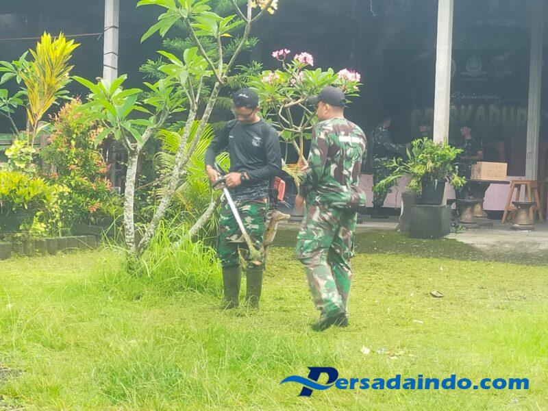 Kegiatan kerja bhakti ini digelar dalam rangka penyiapan berlangsungnya lomba burung berkicau Dandim CUP I 2025 Gantangan Sari Karya (GSK) di Desa Akah.