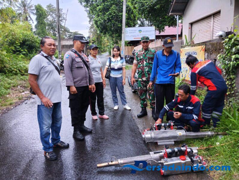 Babinsa Kelurahan Padangkerta Koramil 1623-01/Karangasem Peltu I Wayan Sumadra melaksanakan pendampingan kegiatan fogging, di Lingkungan Dukuh Kec/Kab.Karangasem, pada Sabtu (10/05/25).