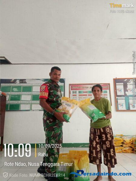Rote Ndao – Pada hari Rabu, 10 September 2025 pukul 11.40 WITA, bertempat di Koramil 1627-03/Batutua, Dusun Tuambian, Desa Sakubatu, Kecamatan Rote Barat Daya, Kabupaten Rote Ndao, Babinsa Praka Noh Nubatonis melaksanakan kegiatan penjualan beras SPHP melalui program Gerakan Pangan Murah (GPM) di wilayah binaannya.