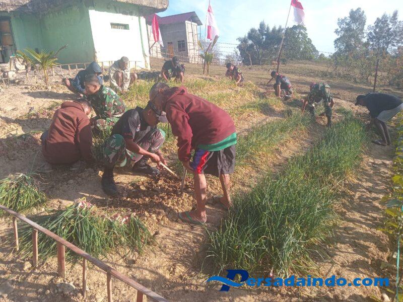 Belu – Pos Kewar ajak masyarakat panen bawang hasil kebun pos di Desa Kewar, Kecamatan Lamaknaen, Kabupaten Belu. Selasa (12/08/2025).