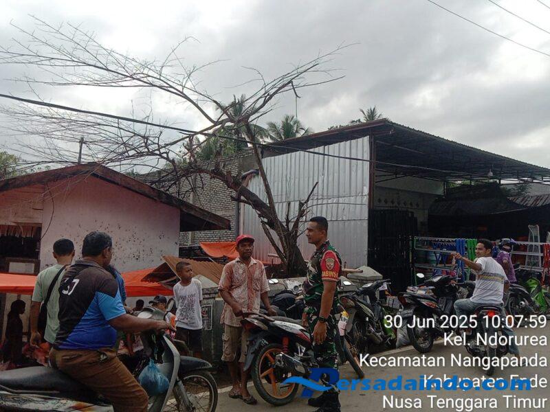 NTT – Ende/Nangapada, Babinsa dari Koramil 01/Ende, mengambil peran aktif dalam membantu mengatur arus lalu lintas di depan Pasar Tradisional Nangapada, Kel. Ndorurea, Kec. Nangapanda, Kab. Ende, Senin (30/06/2025). Kondisi lalu lintas di sekitar pasar tampak lebih padat dari biasanya, dengan banyaknya kendaraan dan pejalan kaki yang berlalu lalang.