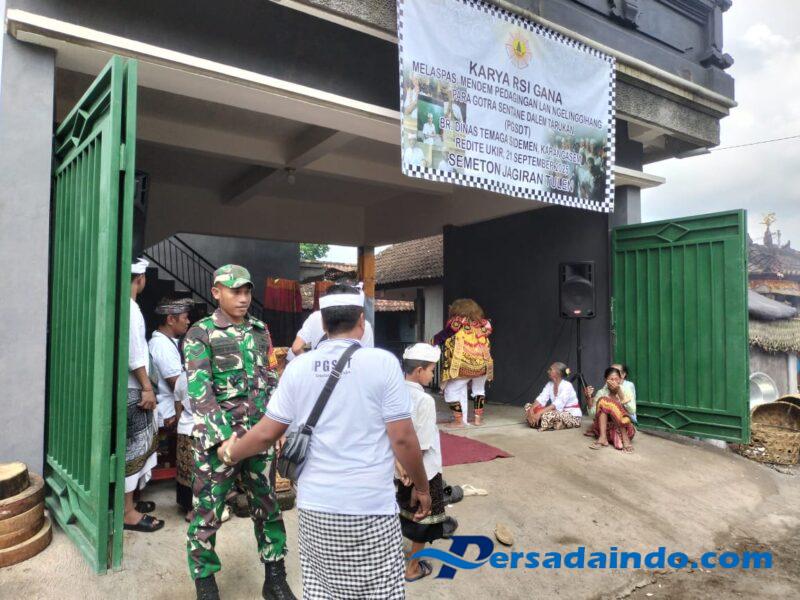 KARANGASEM – Babinsa Desa Kertha Buana Koramil 1623-04/Sidemen Sertu Wayan Widana melaksanakan pengamanan upacara keagamaan, di Banjar Dinas Temaga Dusun Temaga Desa Kertha Buana Kec.Sidemen Kab.Karangasem, pada Minggu (21/09/25).