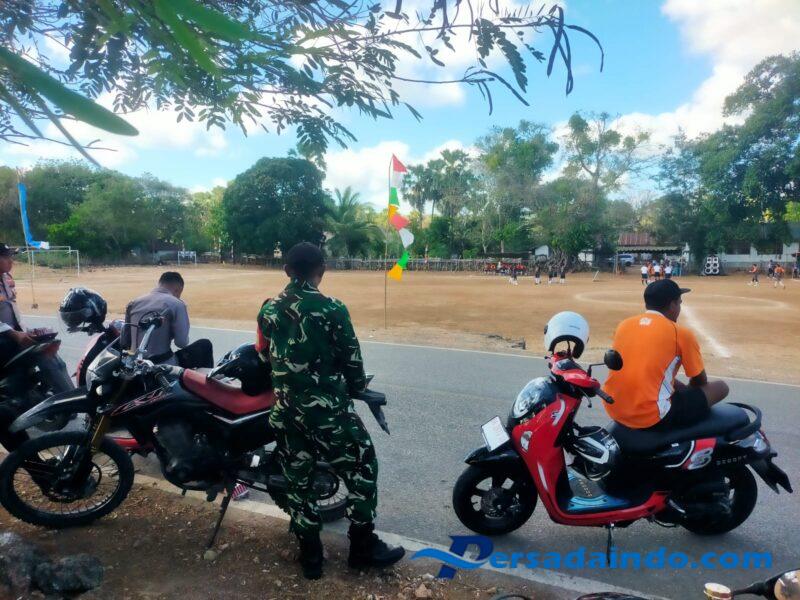 Rote Ndao – Babinsa Koramil 1627-02/Pantai Baru Sertu Haris Lakuy melaksanakan pengamanan pertandingan sepak bola di lapangan bola Olafulihaa Kelurahan Olafulihaa Kecamatan Pantai Baru Kabupaten Rote Ndao, Selasa (5/08/2025)