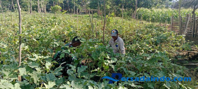 Flotim – Babinsa Koramil 1624-02/Adonara Pratu Rizaldy Martins melaksanakan kegiatan monitoring wilayah dengan mendampingi petani merawat tanaman terong. di Desa Nisakarang, Kecamatan Kelubagolit, Kabupaten Flotim. Rabu (07/05/2025).