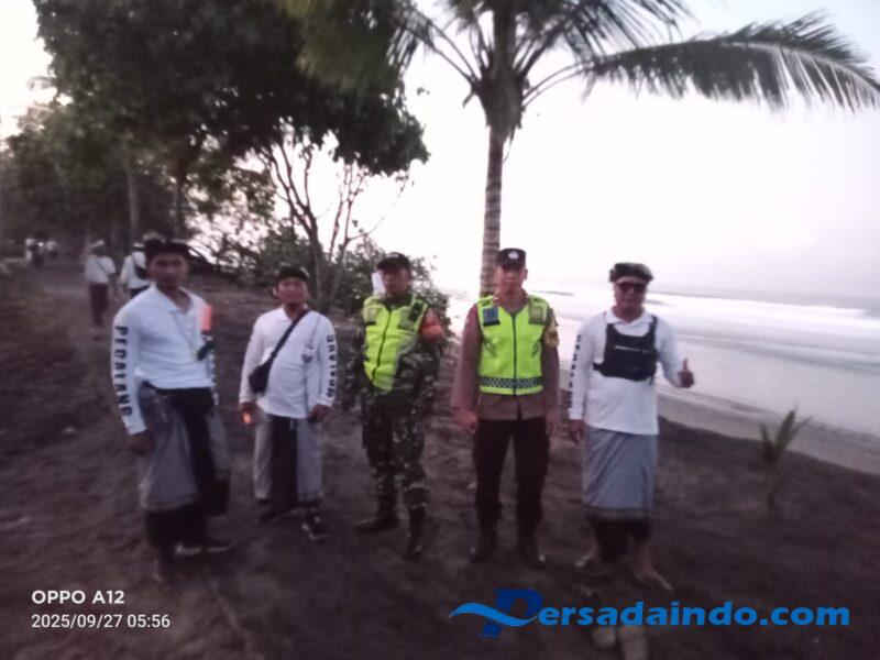 Polres Tabanan – Polsek Seltim, Bhabinkamtibmas Desa Gunung Salak Aipda I Gede Ketut Darma Wijaya, bersinergi dengan Pecalang Adat Gunung Salak melaksanakan pengamanan kegiatan Melasti Adat Gunung Salak dalam rangka rangkaian Kegiatan Ngenteg Linggih di Pura Puseh Adat Gunung Salak ke Pantai Kelecung, Desa Tegalmengkeb, (Sabtu, 28 September 2025, pukul 05.30 Wita).