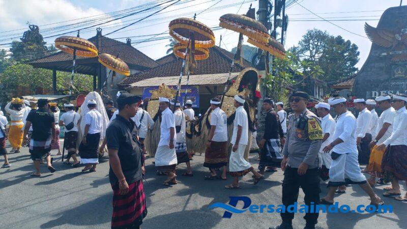 Polres Tabanan-Polsek Marga, Kamis, (02/09/2025) pukul 09.00 s/d 11.45 wita, Bhabinkamtibmas desa tua bersinergi dengan pecalang adat cau tua melaksanakan pengamanan dan pengaturan lalin dalam rangka upacara dewa yadnya ngider buana / melancaran sesuhunan ratu gede dan ratu mas sakti pura dalem adat tua mengelilingi sejebag desa adat cau tua,kec marga,tabanan.