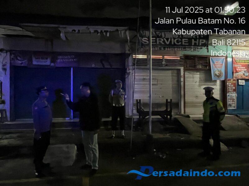 Polda Bali – Polres Tabanan – Humas Tabanan.Pada Jumat dini hari, 11 Juli 2025, saat kebanyakan warga terlelap, kilatan lampu biru kendaraan Polres Tabanan menerangi jalur–jalur sunyi di kota. Delapan belas personel gabungan piket fungsi, dipimpin Pawas AKP I Wayan Parta, S.H., mengawali tugasnya dengan apel kesiapan. Dua unit mobil patroli Lantas dan Samapta menjadi “mata” yang bergerak lincah menyusuri titik-titik rawan demi memastikan tak ada ruang bagi pelaku kejahatan 3C beraksi.