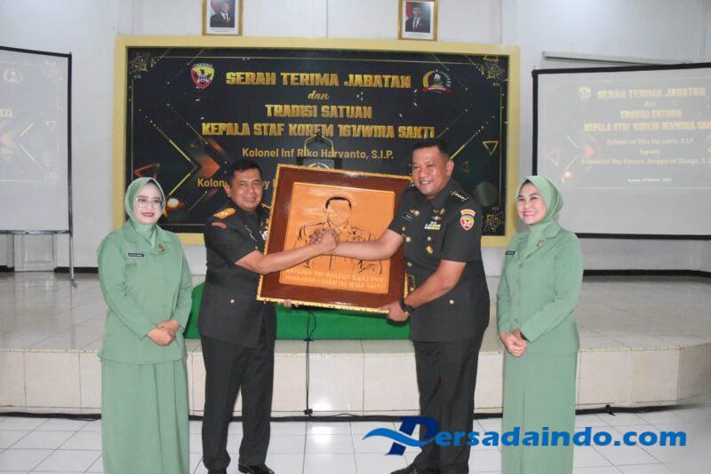 Pelaksanaan Serah Terima Jabatan Kepala Staf Korem 161/Wira Sakti saat ini, yakni dari Kolonel Inf Riko Haryanto, S.I.P. yang mendapat kepercayaan dalam jabatan baru sebagai Dirbindok Pussenif, kepada pejabat baru Kolonel Inf Roy Hansen Jongguran Sinaga, S.Sos. yang sebelumnya menjabat sebagai Asintel Kasdam XV/Patimura.