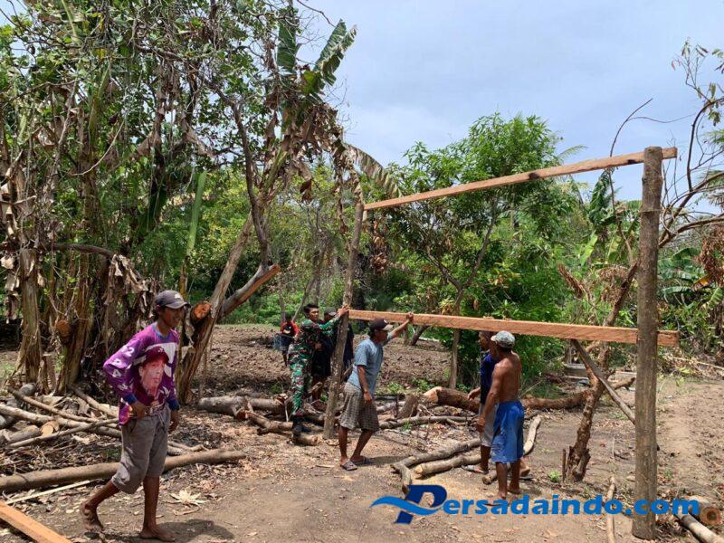 Lembata, – Babinsa Koramil 1624-07/Nagawutung, Kopda Aris Fahmi, bersama masyarakat Desa Imulolong, Kecamatan Wulandoni, Kabupaten Lembata, melaksanakan kegiatan gotong royong pembangunan rumah panggung pada Kamis, 20 November 2025.