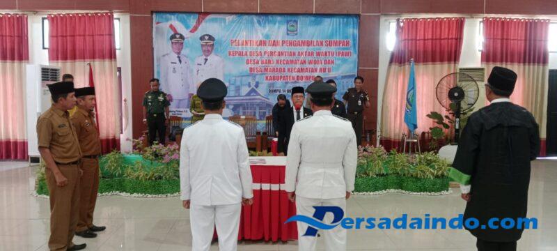Pelantikan dimulai dengan pembacaan ayat suci Al-Qur’an, dilanjutkan menyanyikan lagu Indonesia Raya, doa bersama, serta pembacaan Surat Keputusan Bupati Dompu. prosesi pengambilan sumpah jabatan dipandu langsung oleh Bupati Dompu Bambang Firdaus, SE, diikuti penandatanganan berita acara dan pelantikan kedua kepala desa terpilih, yaitu Agusalim (Kepala Desa Bara) dan Muklis (Kepala Desa Marada). Keduanya akan mengemban amanah hingga Desember 2027.