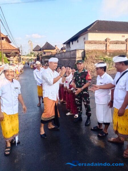 Gianyar – Siangan, Guna memastikan kelancaran dan ketertiban selama kegiatan berlangsung, Babinsa Koramil 1616-01/Gianyar Serka Km Kartawan bersama Bhabinkamtibmas Desa Siangan Aiptu Wayan Sutara melaksanakan pengamanan kegiatan kunjungan kerja Bupati Gianyar, I Made Agus Mahayastra, SST.Par., M.A.P., pada Upacara Piodalan Pedudusan Alit di Pura Dalem, Banjar Bandung, Desa Siangan, Kecamatan Gianyar, Senin (16/6/2025).