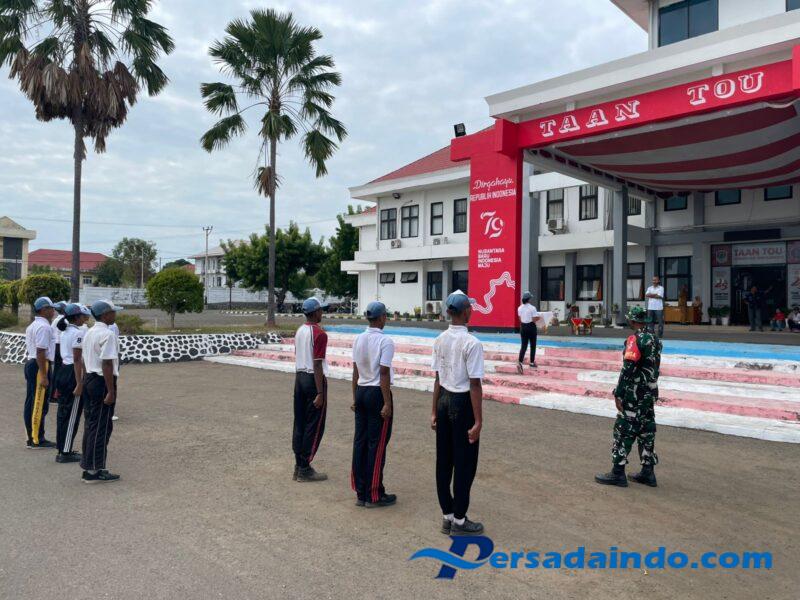 Lewoleba, Lembata – Babinsa Koramil 1624-03/Lewoleba, Sertu Aloysius dan Serda Aprintho RSN, memberikan pelatihan kepada calon Paskibraka Kabupaten Lembata pada Selasa (22/7/2025).