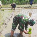 Bangli – Babinsa Desa Mengani, Peltu Komang Wiredana, melaksanakan pendampingan kegiatan tanam padi (LTT) di Subak Giri Merta Yoga bertemp...