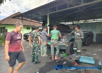 Klungkung,- Kendaraan dinas roda empat milik Kodim 1610/Klungkung yang digunakan sebagai operasional serta mobilitas dalam mendukung tugas pokok satuan diperiksa secara rinci oleh Tim Harpal Denpal IX...
