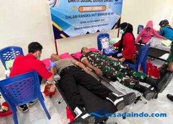 NTB, Sumbawa Besar — Dalam rangka memperingati Hari Ulang Tahun (HUT) Korps Brimob Polri ke-80, personel Kodim 1607/Sumbawa turut berpartisipasi dalam kegiatan bakti sosial donor darah yang diseleng...