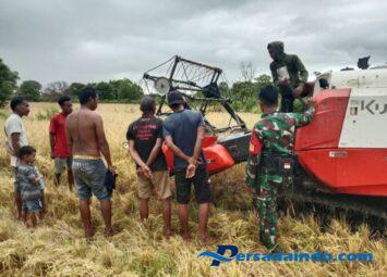 NTT-Sumba Timur.Babinsa Koramil 02/Rindi Umalulu Kodim 1601/Sumba Timur Pratu Ardiamos Kabunang, aktif mendampingi petani dalam kegiatan panen padi menggunakan mesin pertanian (alsintan) di Desa Haika...
