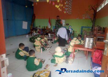 Ende, Babinsa Koramil 1602-01/Ende, Serma M. Zulkifli dan Serka Fredik Teramahi, bersama Kepala Sekolah dan para guru melaksanakan kegiatan pembagian makan bergizi gratis kepada siswa dan siswi TK RA ...