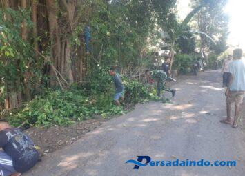 NTT-SIKKA Pratu Yelfrid Leonardus, Babinsa Koramil 1603-04/Kewapante Kodim 1603/Sikka, melaksanakan kegiatan kerja bakti pembersihan bahu jalan dan ranting pohon yang melebar ke jalan di Desa Wolomapa...