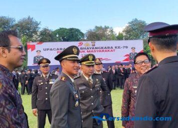 BALI – Denpasar, Upacara dalam rangka memperingati Hari Ulang Tahun (HUT) Bhayangkara ke-79 Tahun 2025, dengan tema “Polri Untuk Masyarakat” digelar di Lapangan Puputan Badung (I Gus...