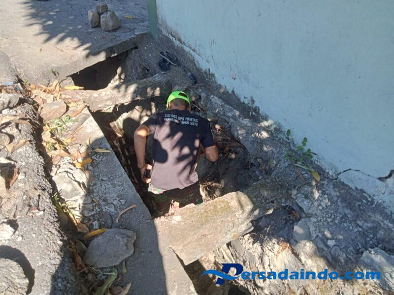 Terlihat di lokasi, beberapa personel Satgas mengenakan seragam loreng TNI sementara warga menggunakan alat sederhana seperti cangkul dan ember untuk mengangkut tanah dan batu. Proses pengerjaan dilakukan secara hati-hati demi menjaga keberlangsungan struktur jalan dan pagar yang berada di sisi saluran.