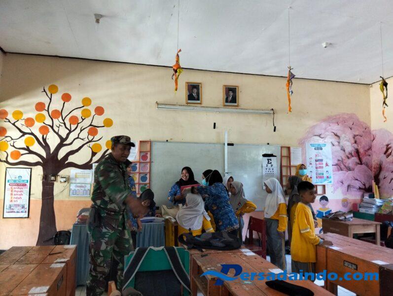 Sumbawa Barat, NTB — Dalam upaya meningkatkan derajat kesehatan anak usia sekolah, Babinsa Koramil 1628-03/Seteluk, Desa Seteluk Atas, Sertu A. Gani turut mendampingi kegiatan pemeriksaan kesehatan siswa/siswi SDN 1 Seteluk yang dilaksanakan oleh tenaga medis dari Puskesmas Seteluk, Rabu (22/10/2025).