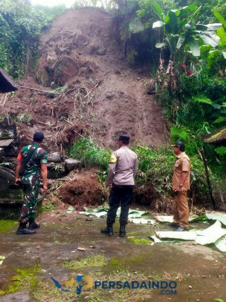Klungkung,- Intensitas hujan tinggi yang mengguyur Klungkung diduga menjadi penyebab terjadinya musibah tanah longsor di Pura Manik Tirta Banjar Kawan, Desa Timuhun, Kecamatan Banjarangkan, Kabupaten Klungkung yang mengakibatkan beberapa pelinggih tertimbun material longsor pada Senin ( 19/01/26 ) pagi.