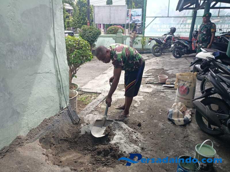 Persadaindo.com – NTT-KUPANG – Untuk menciptakan suasana lingkungan kerja yang tetap terlihat rapi, indah dan nyaman, Kodim 1604/Kupang melakukan kegiatan perbaikan pangkalan dengan melakukan perehapan dan pengecatan tembok Makodim, dipimpin oleh Kapok Tuud Peltu Robinson, Senin (14/4/2025).