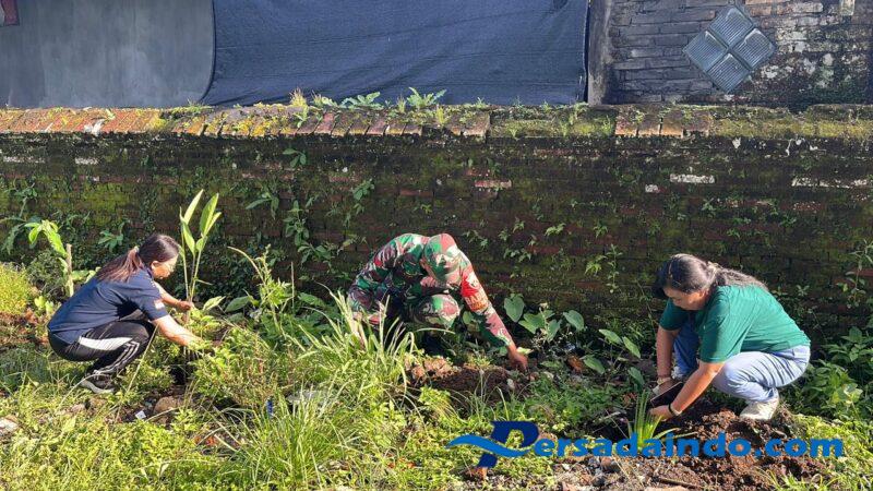 NTT-KUPANG, – Pgs. Danramil 1604-01/Kupang, Kapten Inf Donatus Jelatu bersama Babinsa Serma Roby Wake dan Serka Dewa Putu Sugiatmika melak...