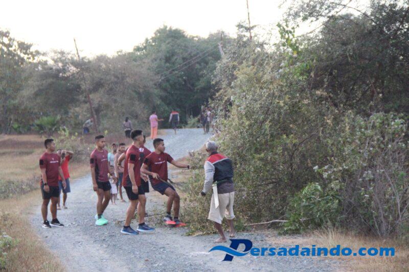 Belu – Satgas Yonif 741/GN bersama masyarakat di perbatasan melaksanakan karya bakti membersihkan jalan di wilayah Kelurahan Umanen, Kecamatan Atambua Barat, Kabupaten Belu. Jumat (20/06/2025).