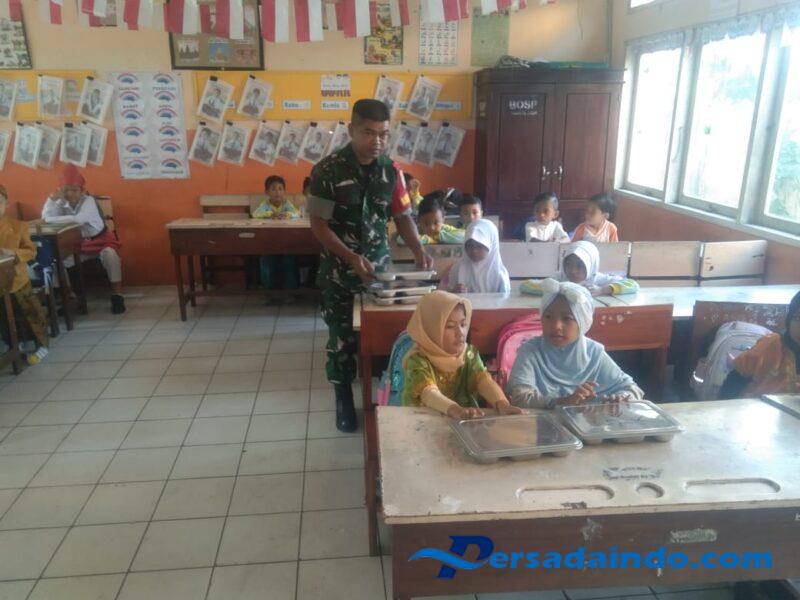 Kota Bima _ Pada hari Selasa, 28 Oktober 2025, Serda Syamsudin, anggota Babinsa Kelurahan Rabangodu Utara, Kecamatan Raba Kota Bima, aktif mendampingi kegiatan pembagian Makan Bergizi Gratis (MBG) dalam program SPPG wilayah Kecamatan Raba Kota Bima. Program ini menyasar sebanyak 3.500 paket makan bergizi yang dibagikan kepada pelajar dari tingkat TK, PAUD, SD, SMP, hingga SMA.