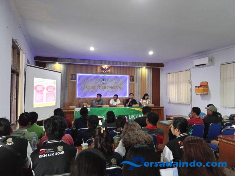 Kegiatan tersebut digelar di Ruang Rapat Kantor Desa Tihingan, Kecamatan Banjarangkan, kabupaten Klungkung yang dihadiri oleh Kepala Sub Bagian Intelijen Kejari Klungkung, I Gusti Ngurah Bayu Satriawan, Perbekel beserta staf dan perangkat desa serta Ketua TP PKK Desa Tihingan dan perwakilan peserta KKN.