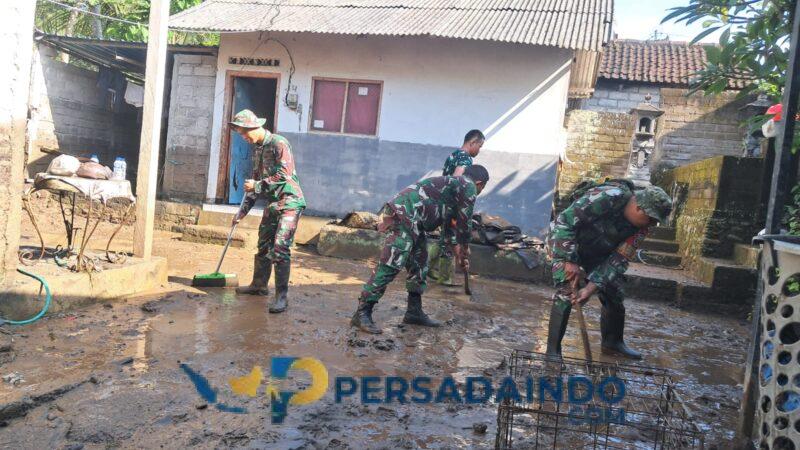 JEMBRANA – Sebagai bentuk kepedulian dan kemanunggalan TNI dengan rakyat, prajurit TNI dari Koramil 1617-04/Pekutatan jajaran Kodim 1617/Jembrana terjun langsung melaksanakan aksi pembersihan rumah warga yang terdampak banjir di Banjar Pasar, Desa Pekutatan, Kabupaten Jembrana, Jumat (16/1).