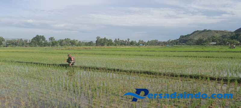 Persadaindo.com -Babinsa Koramil 02/Rindi Umalulu Kodim 1601/Sumba Timur Serda Syamsurijal melaksanakan kegiatan pendampingan kepada petani memantau perkembangan tanaman padi sawah di Desa Katikuluku, Kecamatan Matawai La Pawu, Kabupaten Sumba Timur, Selasa (08/04/2025)
