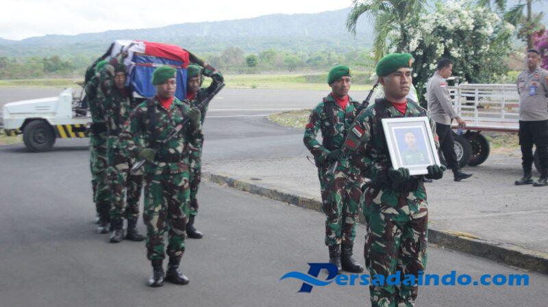 Dari pihak Satgas Yonif 743/PSY turut mendampingi jenazah Danki Satgas Kapten Inf Muhammad Afandi bersama kakak dan adik almarhum.