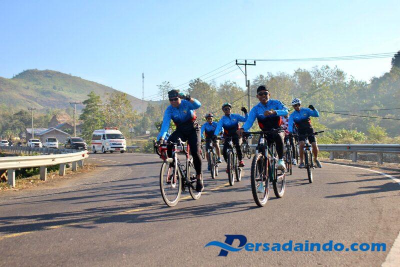 Meski tampak kelelahan, tim sepeda Kodim 1608/Bima yang mengenakan seragam warna biru langit tetap menunjukkan semangat tinggi, kekompakan, dan pantang menyerah.