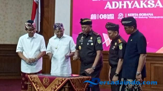 Gubernur Bali, Drs. I Wayan Koster, menyampaikan bahwa program Balai Paruman Adhyaksa ini merupakan program yang sangat inovatif dalam penyelesaian masalah hukum di tingkat Desa. Program ini bertujuan memberikan penyuluhan hukum dan pendampingan hukum terhadap permasalahan yang dihadapi di tingkat bawah.