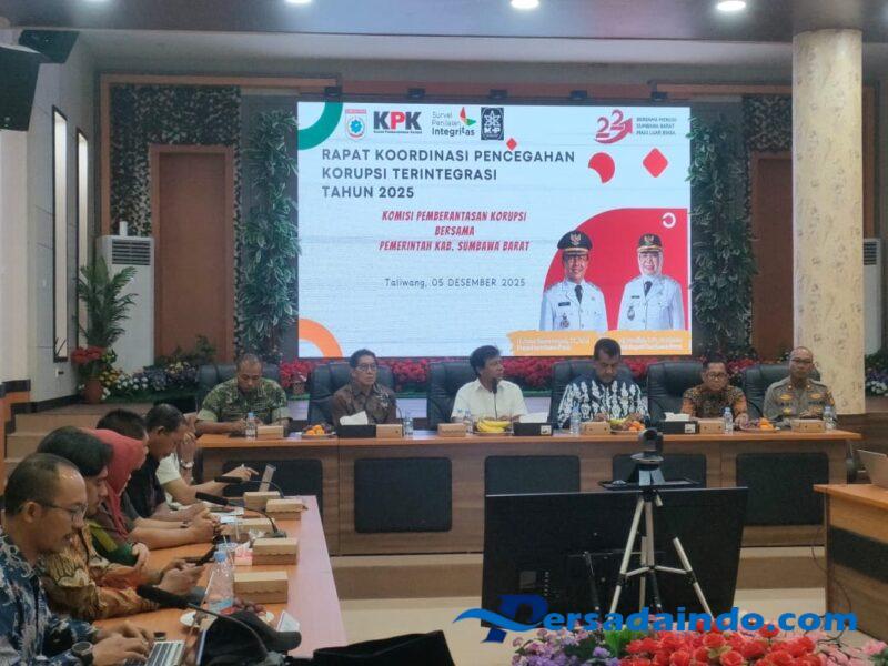 Sumbawa Barat — NTB, Komandan Kodim 1628/KSB, Letkol Inf Rendra Agit Trisnawan, menghadiri Rapat Koordinasi Pencegahan Korupsi Terintegrasi Pemerintah Kabupaten Sumbawa Barat Tahun 2025 yang digelar oleh KPK RI bersama Pemerintah Daerah KSB di Ruang Rapat Graha Fitra, Kompleks Kemutar Telu Center (KTC), Jum’at (05/12/2025).
