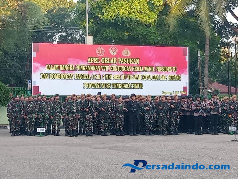 NTT-KUPANG, – Dandim 1604/Kupang, Kolonel Inf Kadek Abriawan, S.I.P., M.H.I., turut serta dalam Apel Gelar Pasukan dalam rangka Pengamanan VVIP Kunjungan Kerja Wakil Presiden RI, Gibran Rakabuming Raka di Lapangan Hitam Makorem 161/WS, Kota Kupang. Apel ini dipimpin oleh Kasdam IX/Udayana, Brigjen TNI Taufiq Hanafi, dan diikuti oleh sekitar 1.270 personel gabungan dari TNI, Polri, dan unsur pendukung lainnya. Senin (05/05/2025).