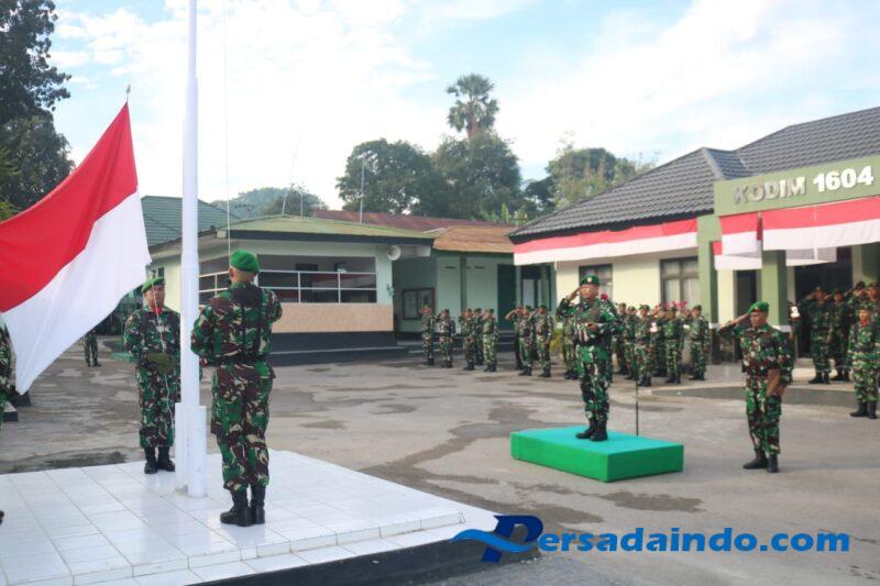 NTT-KUPANG, — Komando Distrik Militer (Kodim) 1604/Kupang kembali melaksanakan Upacara Bendera Mingguan sebagai bentuk pembinaan kedisiplinan, loyalitas, dan penanaman jiwa nasionalisme bagi prajurit dan ASN. Upacara berlangsung di Lapangan Makodim 1604/Kupang, Jln. Moh. Hatta, Kelurahan Fontein, Kecamatan Kotaraja, Kota Kupang, Pada kesempatan ini, Inspektur Upacara (Irup) dipimpin langsung oleh Dandim 1604/Kupang Kolonel Inf Kadek Abriawan, S.I.P., M.H.I, dengan rangkaian prosesi berjalan khidmat sesuai tata upacara militer. Senin (25/08/2025)