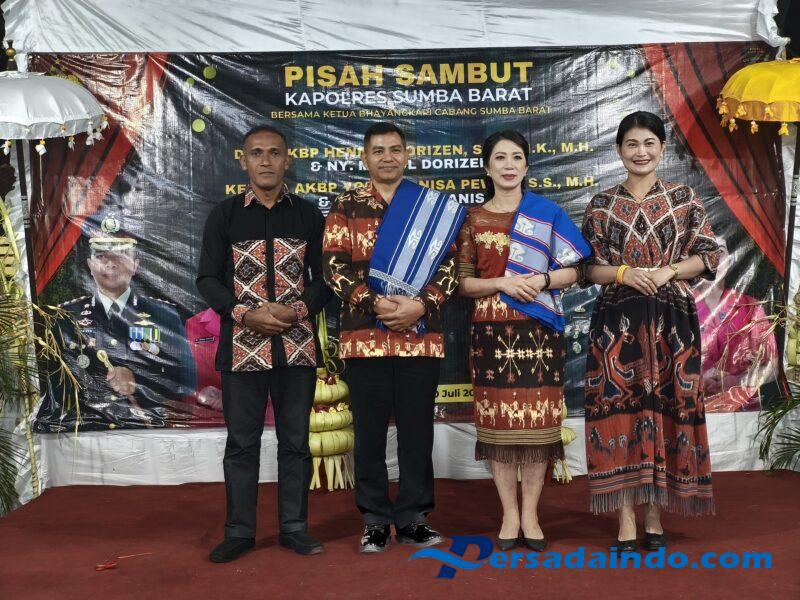 SUMBA BARAT – Komandan Kodim 1613/Sumba Barat Letkol Inf Ignasius H. Sogen, S.E., M.Han., didampingi Ketua Persit KCK Cabang XVIII Dim 1613/Sumba Barat Ny. Natalia Ignasius, menghadiri acara lepas sambut Kapolres Sumba Barat, Kamis (10/7/2025).